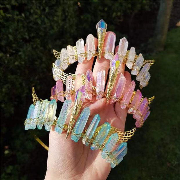 Celestial Aura Crystal Crown — Handmade Energy Healing Headpiece