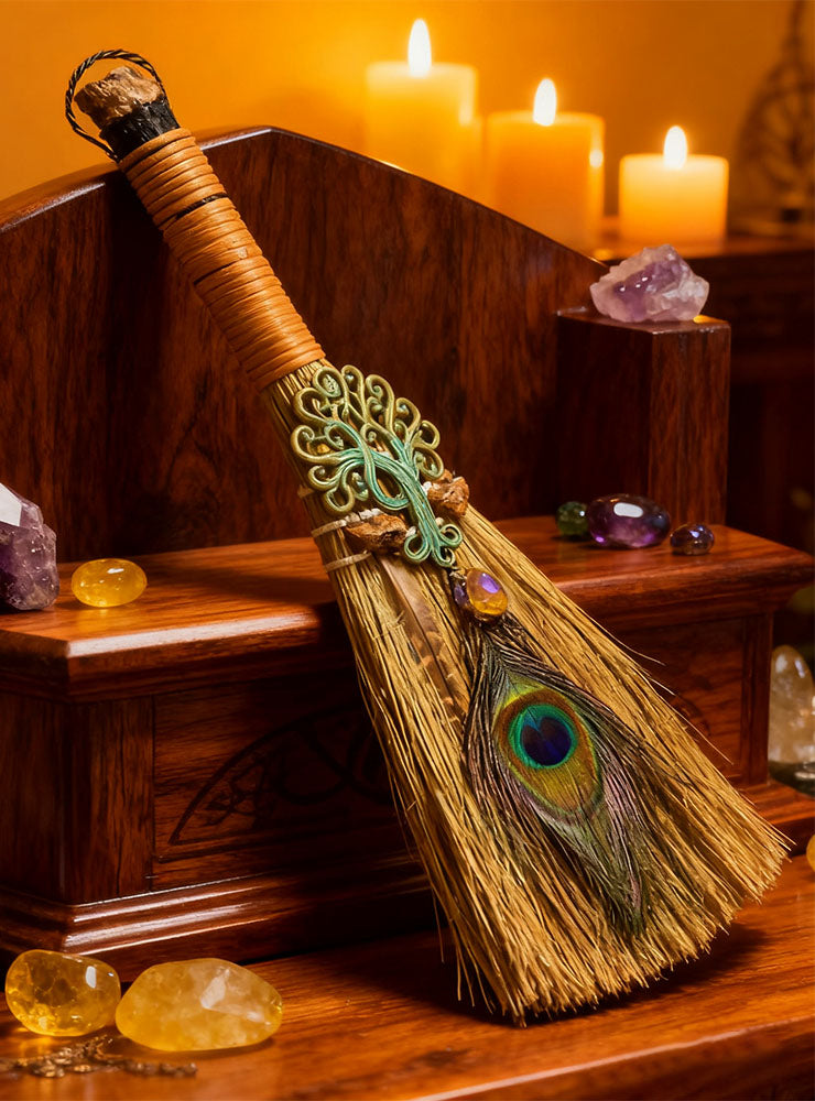 Amethyst Protection Broom – Handcrafted Witch Broom for Energy Cleansing