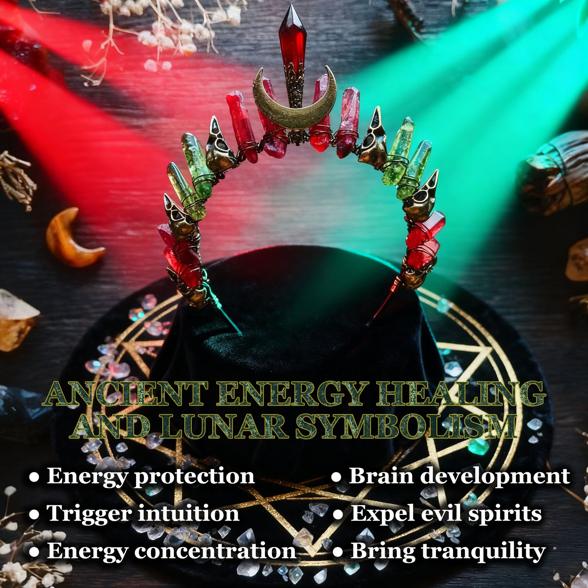 Rooted in ancient energy healing and lunar symbolism, this crown channels both Earth and cosmic vibrations to: