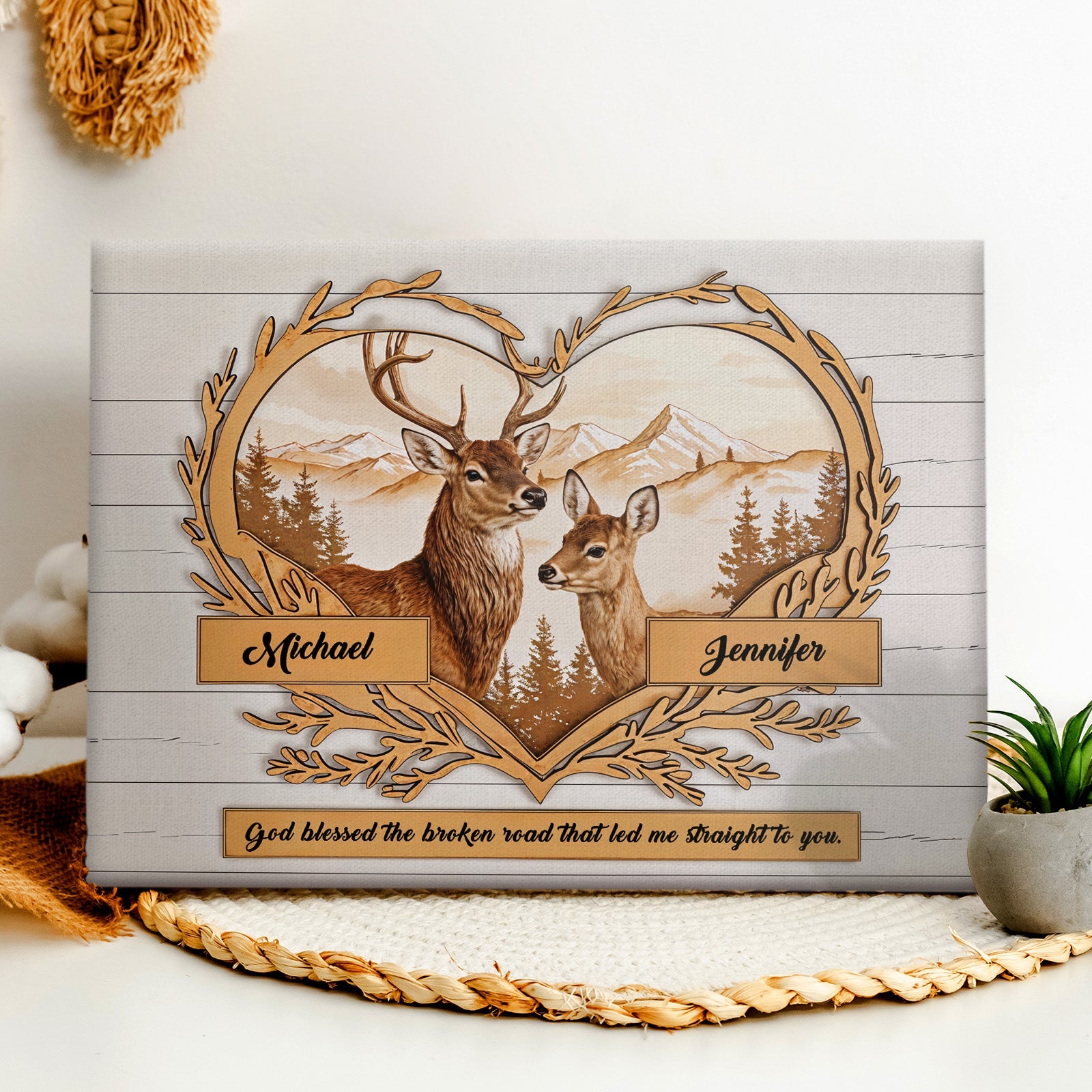 Custom Names Deer Love Mountains Premium Canvas Print Personalized Wall Decor Gift for Couple