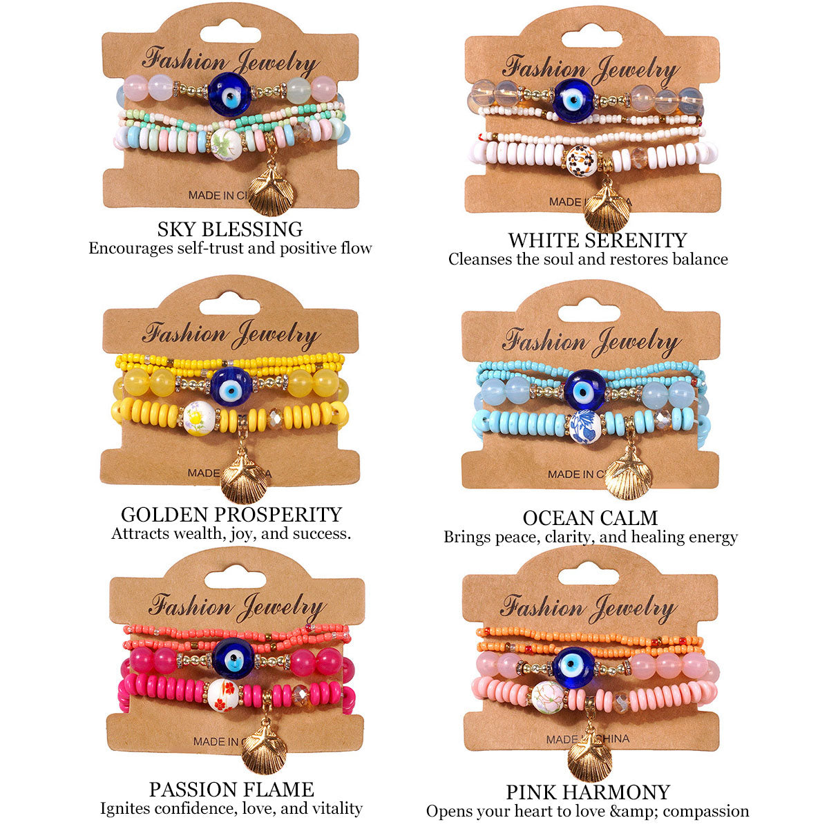 Each bracelet features the ancient Evil Eye symbol, known across cultures to protect against negative energy and attract good fortune.