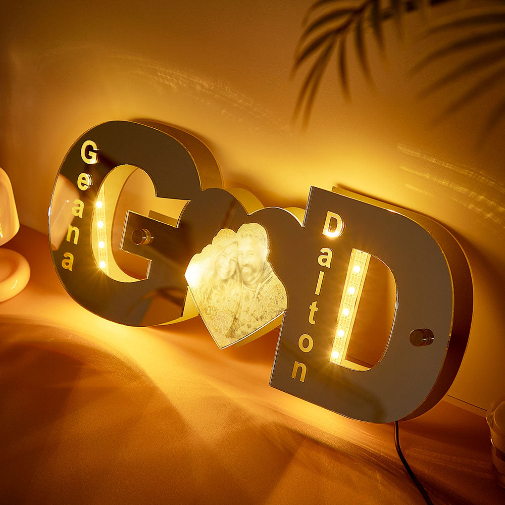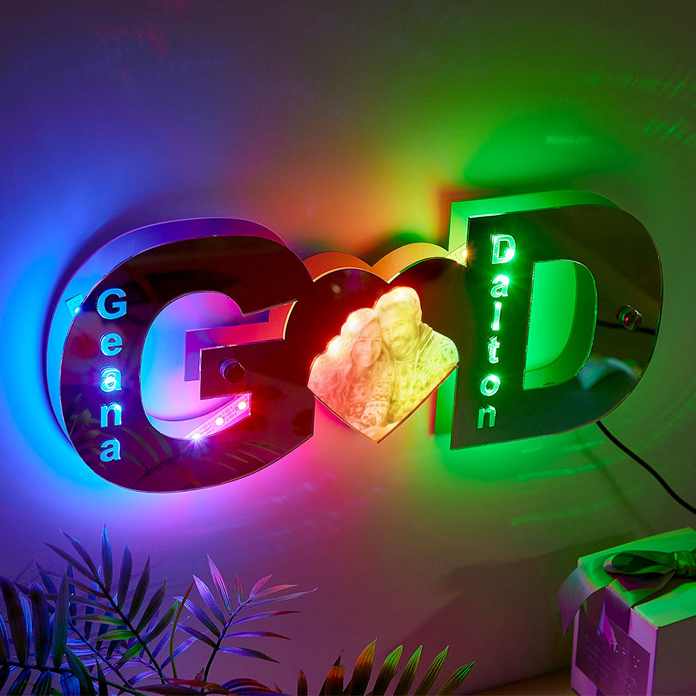Personalized letter heart photo led mirror light Valentine's Day Gifts