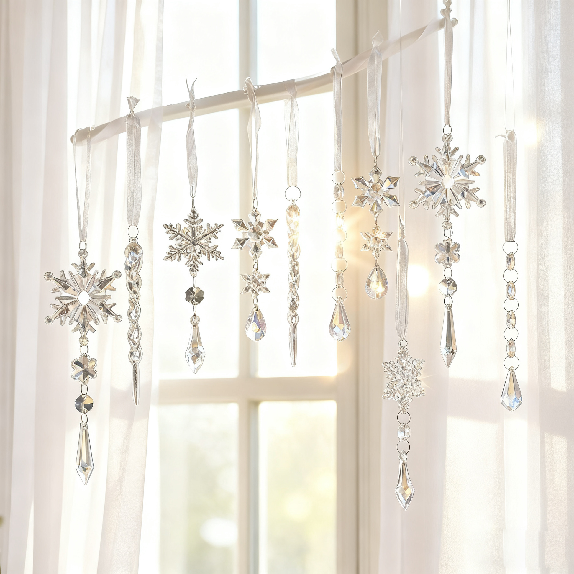 Snowdrop Crystal Ornaments – 10-Piece Hanging Christmas Décor Set