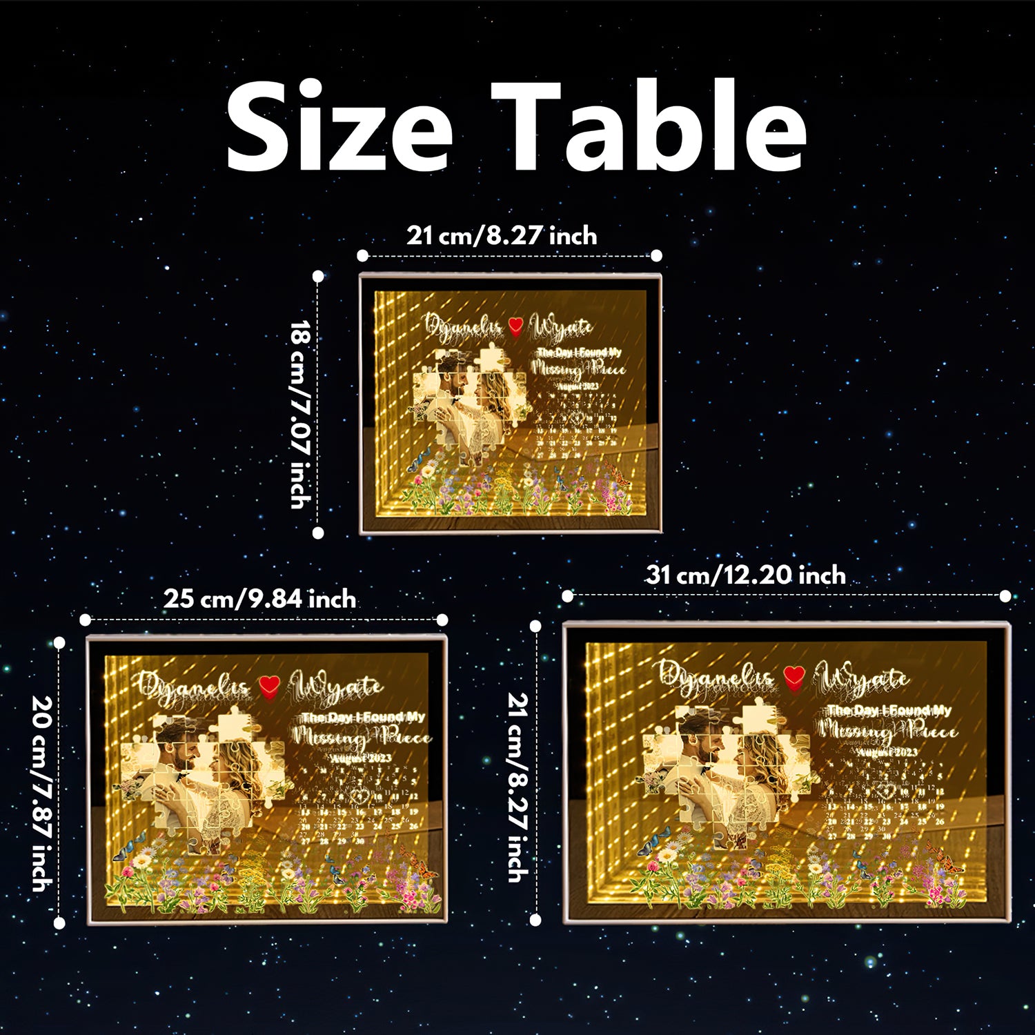 The Day I Found My Missing Piece Light Customize Photo and Calendar Custom Name Personalized Gift For Couple